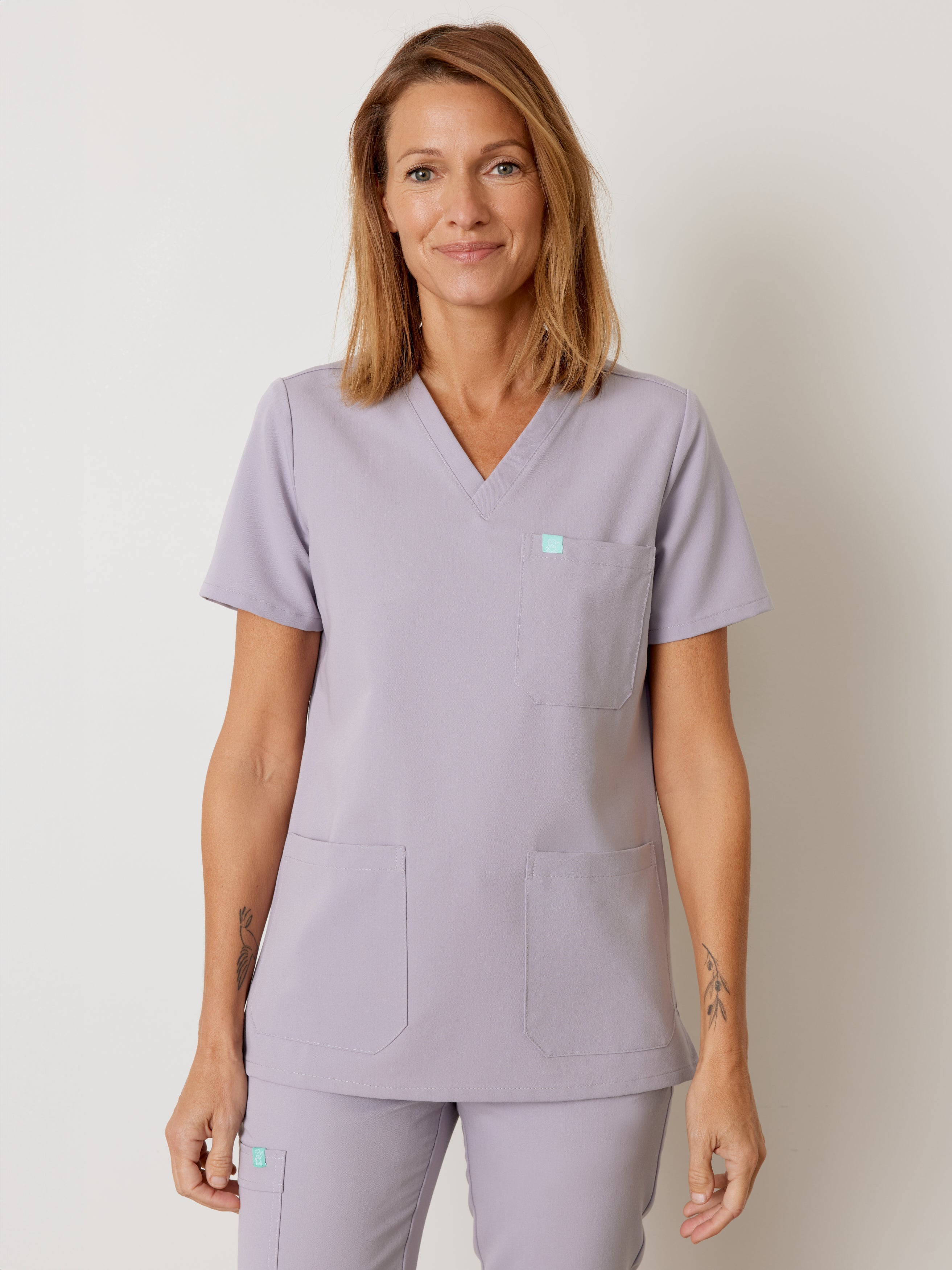 Chloé – for those who are storage freaks. With these three storage pockets, its spacious and stylish fit, its V-neck and its stretchy side; this uniform has everything you need. Available in multiple colors, it's the perfect choice for any healthcare worker who freaks out if their pockets are empty! A uniform made in Canada. This one’s a heartbreaker.