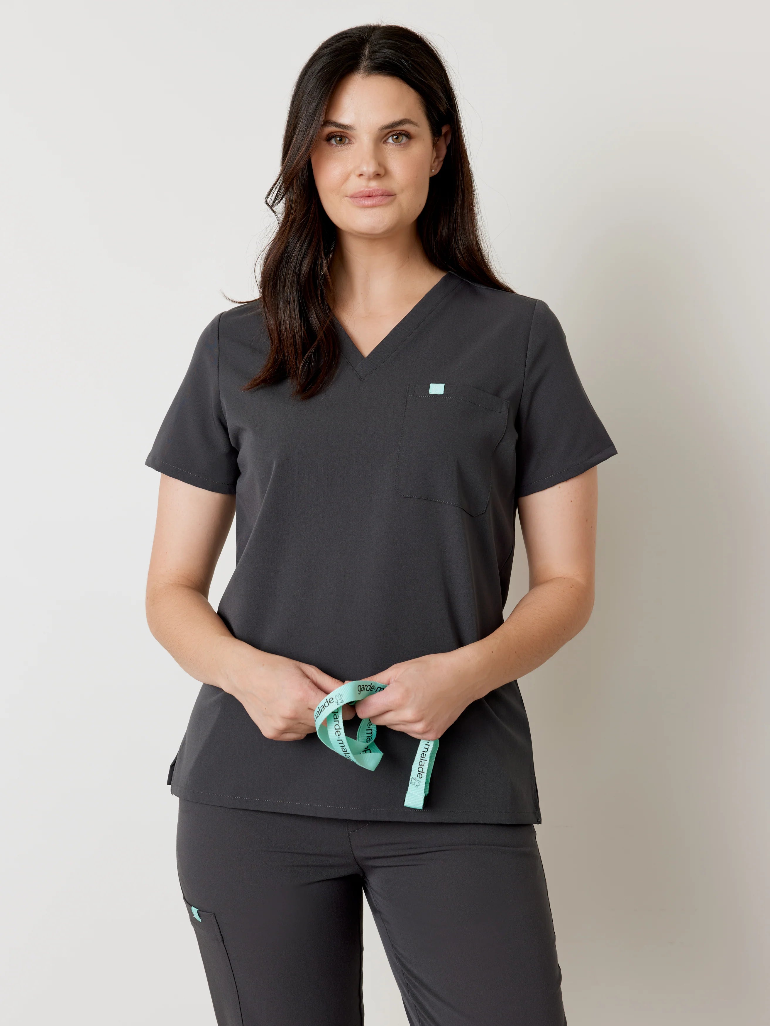 GABRIELLE RE-GARDE™ - CHARCOAL - One Pocket Scrub Top - SILVADUR™