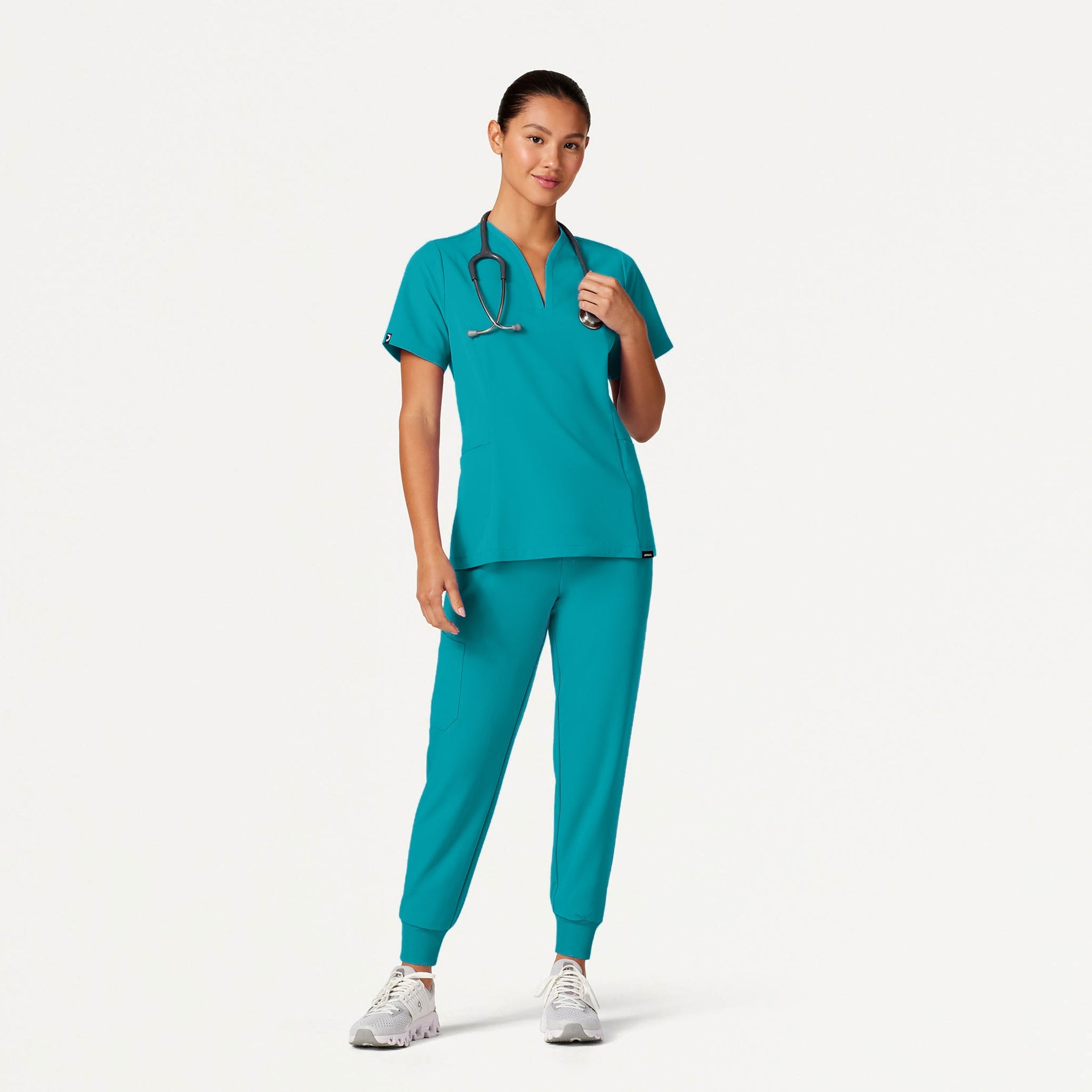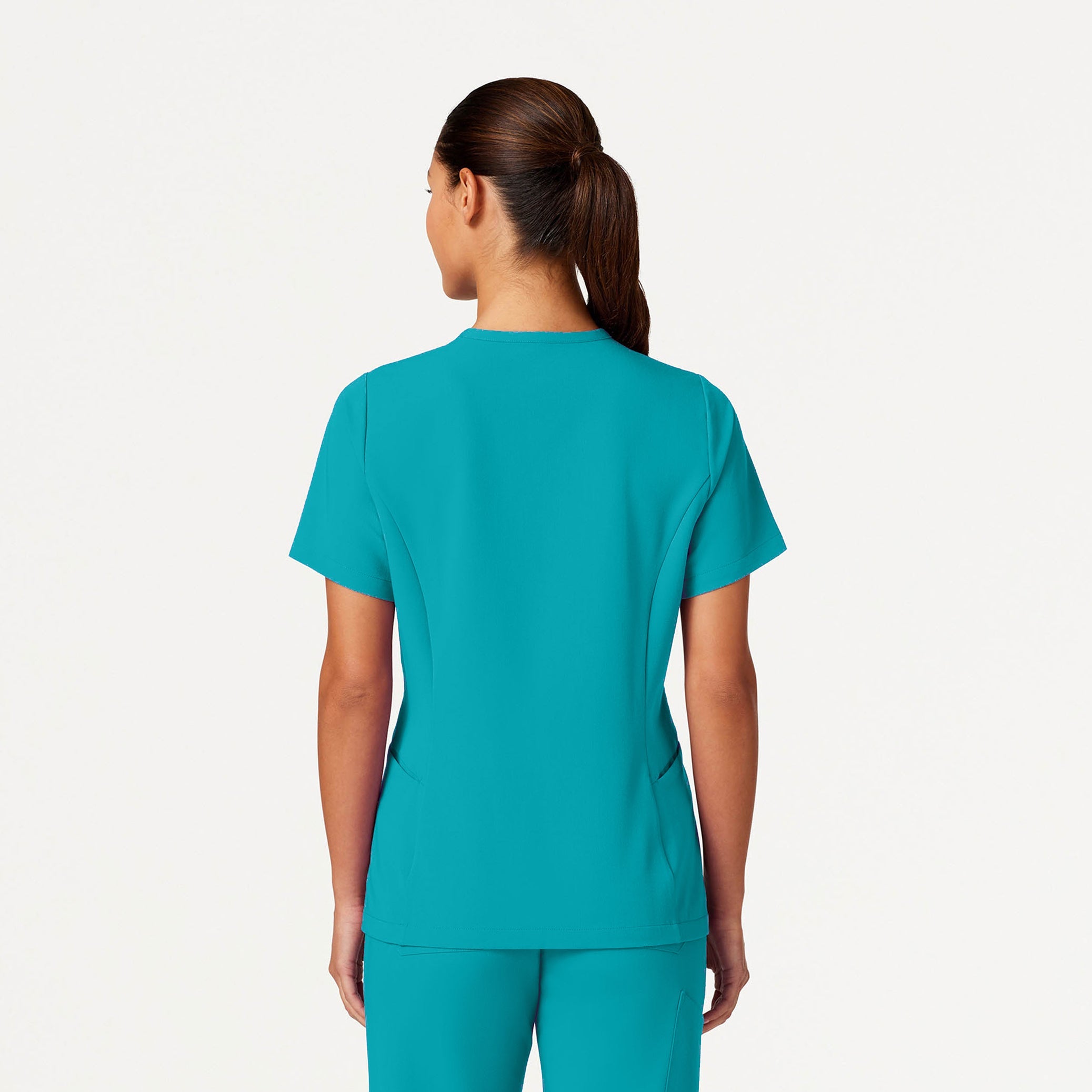 Waist-cinching fit with a unique and flattering neckline. This style pairs best with JAANUU UltraLAST™ scrub pants.